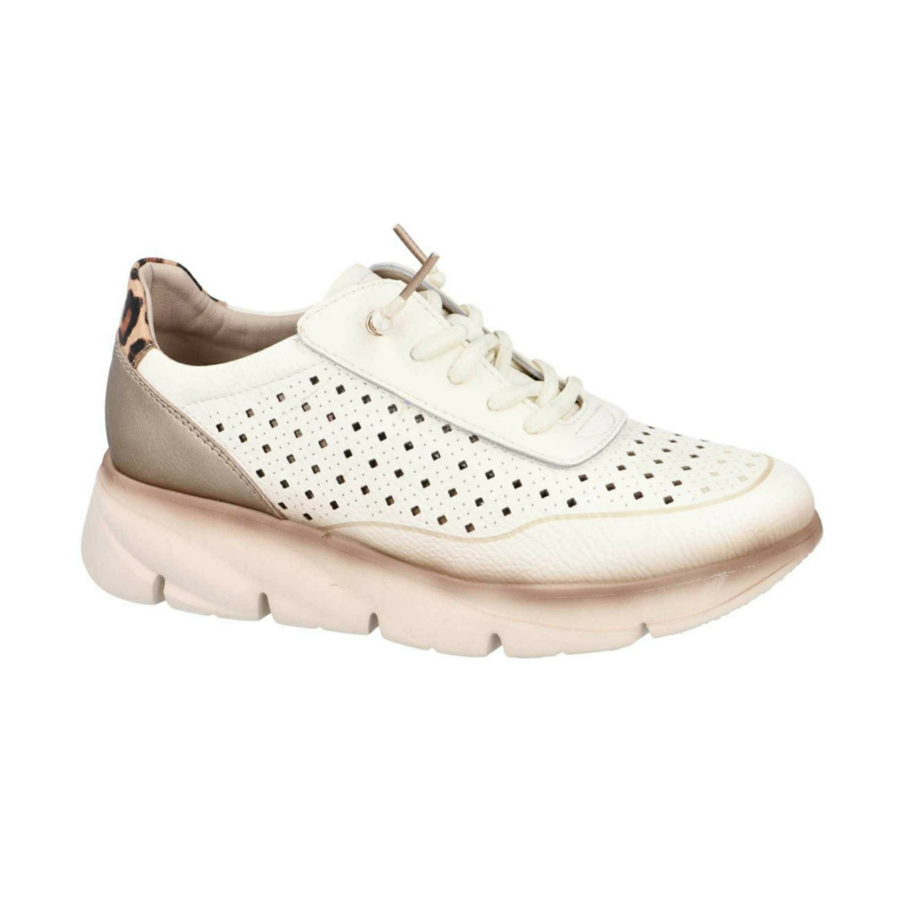 Disponible en blanco y piel serraje beis.